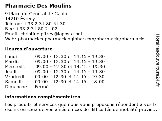 Lundi | 09:00-12:30 et 14:15-19:30 |