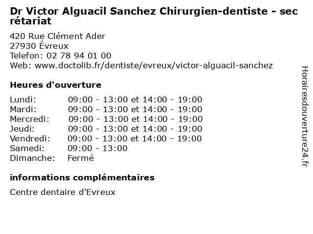 | Lundi | 09:00-13:00 et 14:00-19:00 |