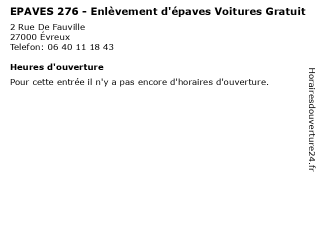 | Appeler EPAVES 276 - Enlèvement d'épaves Voitures Gratuit | |