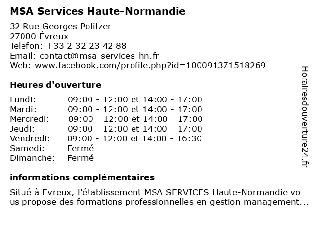 | Lundi | 09:00-12:00 et 14:00-17:00 |