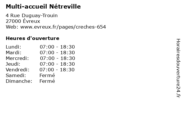 1 Caisse d'allocations familiales (Caf) de l'Eure - accueil d'Évreux - Nétreville (Distance: 0,68 km) 10 rue Jean-Bart, 27000 Évreux accueil, allocations, caf, caisse, d'allocations, d'évreux, de, familiales, l'eure, nétreville, évreux 2 Intermarché station-service Evreux Nétreville (Distance: 0,96 km) 1 Rue de Fauville, 27000 Évreux evreux, intermarché, nétreville, service, station 3 Multi-accueil Centre ville - N°1 (Distance: 1,25 km) 52 Rue Isambard, 27000 Évreux accueil, centre, crèche, enfant, garde d'enfants, jardin d'enfants, multi, n°1, pédagogie, soins toute la journée, ville 4 Multi-accueil Centre ville - N°2 (Distance: 1,25 km) 52 Rue Isambard, 27000 Évreux accueil, centre, crèche, enfant, garde d'enfants, jardin d'enfants, multi, n°2, pédagogie, soins toute la journée, ville 5 Multi-accueil La Madeleine (Distance: 2,13 km) 9 Rue Victoria Mxenge, 27000 Évreux accueil, crèche, enfant, garde d'enfants, jardin d'enfants, la, madeleine, multi, pédagogie, soins toute la journée 6 Multi-accueil Saint-Michel (Distance: 2,99 km) 4 Rue des Frères-Montgolfier, 27000 Évreux accueil, crèche, enfant, garde d'enfants, jardin d'enfants, michel, multi, pédagogie, saint, soins toute la journée |