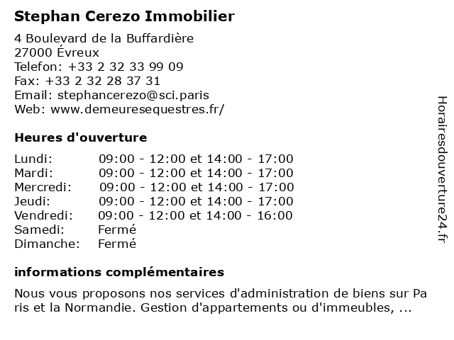 1 Stephan Renaud - Psychologue (Distance: 34,69 km) 35 Rue de Paris, 27620 Gasny folie, psychiatre, psychiatrie, psychiatrique, psychologue, renaud, stephan 2 stephan fuchs (Distance: 50,09 km) 10 Rue Du 8 Mai, 76250 Déville-Lès-Rouen appartement, fuchs, maison, peintre en bâtiment, renovation, spécialiste, stephan 3 MAAF Assurances EVREUX (Distance: 0,42 km) 10 Avenue du Maréchal Foch, 27000 Évreux assurance, assurance auto, assurance habitation, assurance moto, assurance professionnelle, assurance prêt immobilier, assurances, crédit auto, evreux, maaf, mutuelle, mutuelle santé 4 Stratège Immo (Distance: 0,58 km) 22 bis rue de Verdun, 27000 Evreux agence, gestion, immo, immobilier, location, stratège, transactions, vente 5 Delta Immo (Distance: 0,60 km) 1 rue Dulong, 27000 Evreux agence, appartement, delta, gestion, immo, immobilier, location, maison, transaction, vente 6 Urban Immobilier (Distance: 0,66 km) 32 rue de Verdun, 27000 Évreux achat, agence, gestion, immobilier, location, urban, vente |