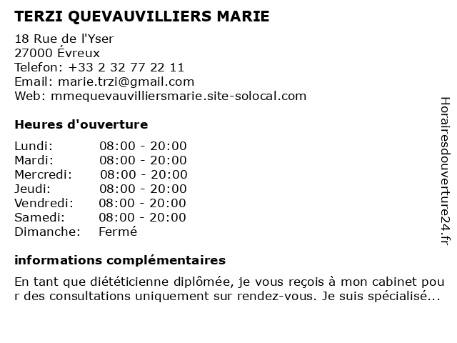 | Mercredi | 08:00-20:00 |