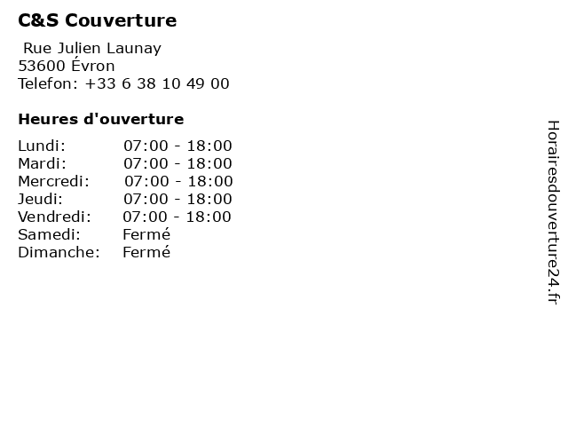 | Lundi | 07:00-18:00 |
