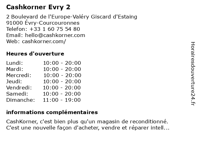 Termes de recherche pour Cashkorner Evry 2:evry, cashkorner |