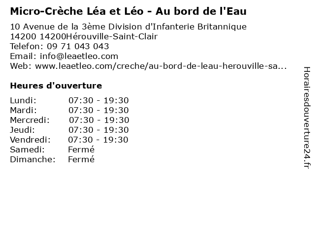 | Mercredi | 07:30-19:30 |