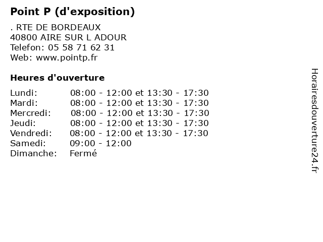 | Dimanche | Fermé |