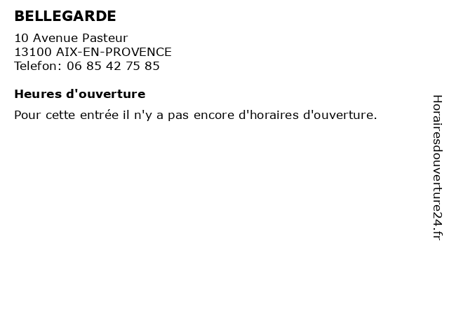 | 1 Parking Bellegarde (Distance: 0,33 km) 51 Boulevard Aristide Briand, 13100 Aix-en-Provence bellegarde, car, parking 2 Onepark / Parc Bellegarde Parking (Distance: 0,43 km) 52 Place Bellegarde, 13100 Aix-en-Provence bellegarde, onepark, parc, parking, services 3 EUROREPAR GARAGE BELLEGARDE (Distance: 0,47 km) 1 Boulevard François et Emile Zola, 13100 Aix-en-Provence bellegarde, eurorepar, garage |