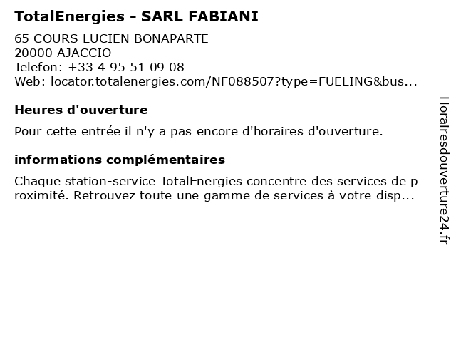 Termes de recherche pour TotalEnergies - SARL FABIANI:sarl, total, gas station, station service, fabiani, tankstelle, totalenergies |