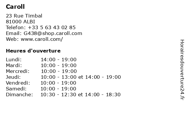 | Dimanche | 10:30-12:30 et 14:00-18:30 |