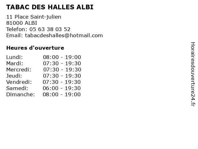 Termes de recherche pour TABAC DES HALLES ALBI:albi, des, tabac, halles, bureau de poste, magasin de cigarettes électroniques |