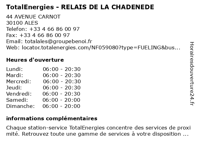 Termes de recherche pour TotalEnergies - RELAIS DE LA CHADENEDE:relais, la, de, total, gas station, station service, chadenede, tankstelle, totalenergies |