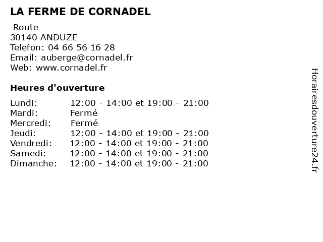 | Mercredi | Fermé |