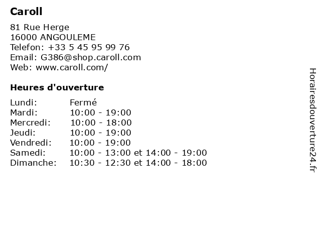 | Lundi | Fermé |