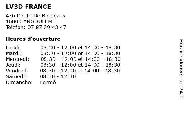 | Lundi | 08:30-12:00 et 14:00-18:30 |