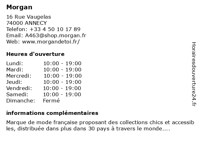 2 Morgan (Distance: 1,41 km) . Avenue d'Aix Les Bains, 74600 Annecy Seynod beaute, cafe, chaussures, enfants, hommes, lingerie, mode femmes, morgan, restaurant, sport 3 TC Notaires Me Morgan TRIVIDIC et Me Stéphane CERATO (Distance: 0,28 km) 8 Quai Eustache Chappuis, 74000 Annecy cerato, et, me, morgan, notaires, stéphane, tc, trividic 4 Boutique Lled (Distance: 0,07 km) 17 Rue de l'Annexion, 74000 Annecy annecy, boutique, femme, lled, marque, sac, vente, vêtements 5 JACADI ANNECY SOMMEILLER (Distance: 0,09 km) 17 Rue Sommeiller, 74000 Annecy annecy, chaussure fille, chaussures garçon, jacadi, manteau fille, robe fille, sommeiller, vêtements bébé fille, vêtements bébé garçon, vêtements enfant, vêtements fille, vêtements garçon, vêtements naissance 6 Vanessa Bruno (Distance: 0,09 km) 2 Rue Royale, 74000 Annecy annecy, bruno, chemises, pantalon, sac, vanessa, vente, vêtements |