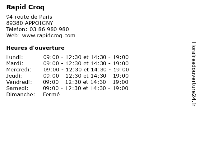 | Mardi | 09:00-12:30 et 14:30-19:00 |