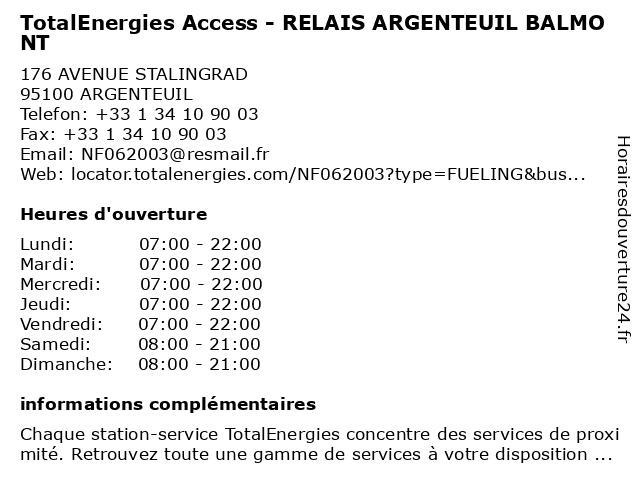 Termes de recherche pour TotalEnergies Access - RELAIS ARGENTEUIL BALMONT:relais, argenteuil, access, total, balmont, gas station, station service, tankstelle, totalenergies |