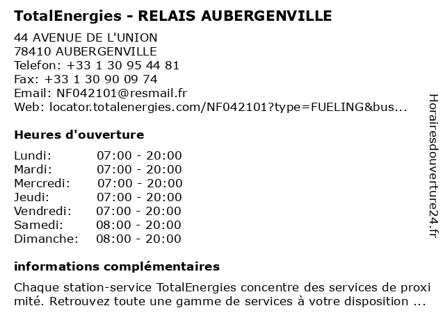 Termes de recherche pour TotalEnergies - RELAIS AUBERGENVILLE:relais, total, gas station, aubergenville, station service, tankstelle, totalenergies |