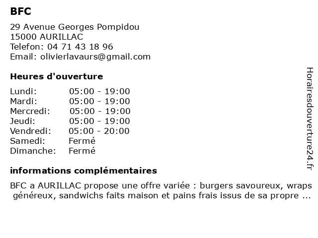 | Vendredi | 05:00-20:00 |