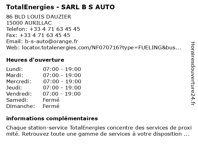 Termes de recherche pour TotalEnergies - SARL B S AUTO:auto, sarl, total, gas station, station service, tankstelle, totalenergies |