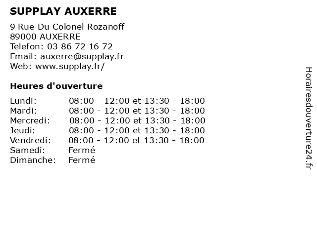 | Mardi | 08:00-12:00 et 13:30-18:00 |