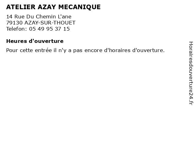 Termes de recherche pour ATELIER AZAY MECANIQUE:azay, atelier, mécanique |