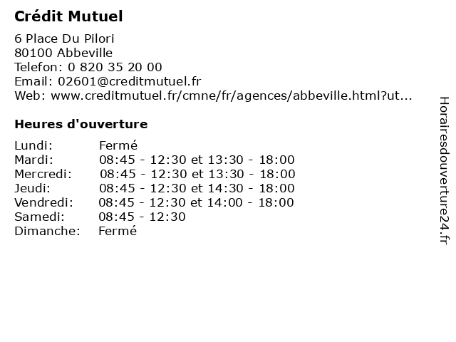 1 Crédit Mutuel (Distance: 0,01 km) 6 Place du Pilori, 80100 Abbeville assurances, bancaire, banque, credit, crédit, mutuel, services 2 Crédit Mutuel (Distance: 18,96 km) 10 B Place de la République, 80390 Fressenneville assurances, bancaire, banque, credit, crédit, mutuel, services 3 Crédit Mutuel (Distance: 18,96 km) 10 b Place De La Republique, 80390 Fressenneville compagnie de téléphone, crédit, mutuel, organisme d'assurance 4 Crédit Mutuel (Distance: 37,21 km) 436 Rue d'Abbeville, 80000 Amiens assurances, bancaire, banque, credit, crédit, mutuel, services 5 Credit Mutuel (Distance: 40,60 km) 128 Chaussée Saint Pierre, 80080 Amiens assurances, bancaire, banque, credit, mutuel, services 6 Crédit Mutuel (Distance: 40,63 km) 16 B Rue des Vergeaux, 80000 Amiens assurances, bancaire, banque, credit, crédit, mutuel, services |