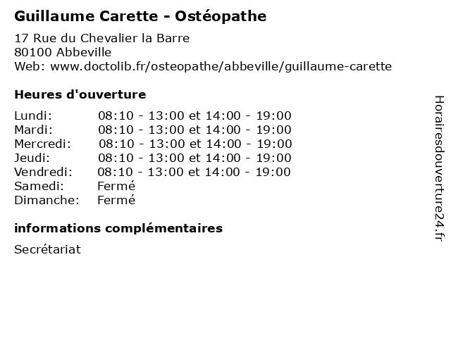 | Lundi | 08:10-13:00 et 14:00-19:00 |