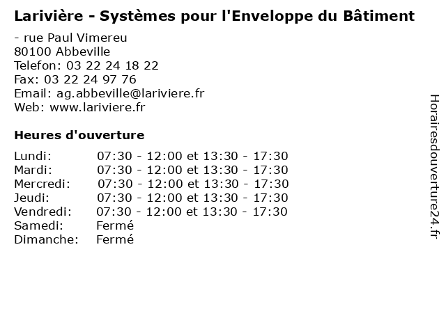 | Lundi | 07:30-12:00 et 13:30-17:30 |