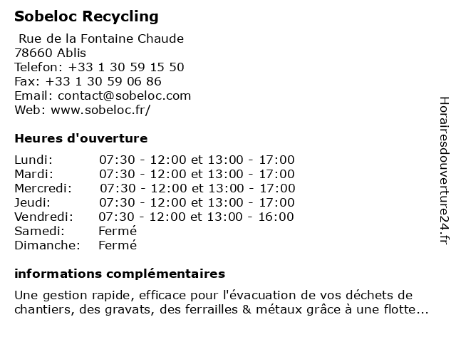 | Lundi | 07:30-12:00 et 13:00-17:00 |