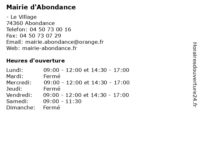 1 Maison de Services au Public (MSAP) - Abondance (Distance: 2,13 km) - Place Du Champ De Foire, 74360 Abondance abondance, administration, aide, au, de, mairie, maison, msap, public, service, services 2 Mairie Vacheresse (Distance: 4,50 km) 1071 Route du Chef-lieu, 74360 Vacheresse administration, assoc public, mairie, vacheresse 3 Mairie de La Chapelle-d'Abondance (Distance: 4,74 km) 18 route de Savoie, 74360 La Chapelle-d'Abondance administration, chapelle, d'abondance, de, la, mairie, publique, service 4 Mairie d'École (Distance: 8,27 km) . Chef-lieu, 73630 École administration, assoc public, d'école, mairie 5 Mairie de Châtel (Distance: 9,52 km) 109 Route du Centre, 74390 Châtel administration, assoc public, châtel, de, mairie 6 Mairie de Vinzier (Distance: 10,02 km) 1 Place de la Mairie, 74500 Vinzier administration, assoc public, de, mairie, vinzier |