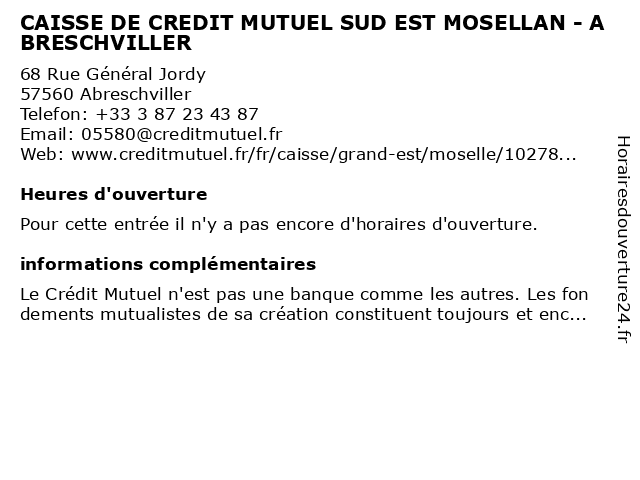 Termes de recherche pour CAISSE DE CREDIT MUTUEL SUD EST MOSELLAN - ABRESCHVILLER:de, crédit, est, sud, mutuel, caisse, mosellan, abreschviller |