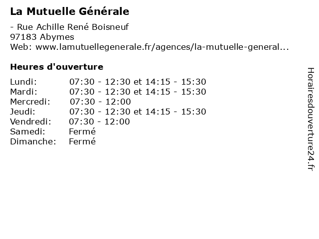| Lundi | 07:30-12:30 et 14:15-15:30 |