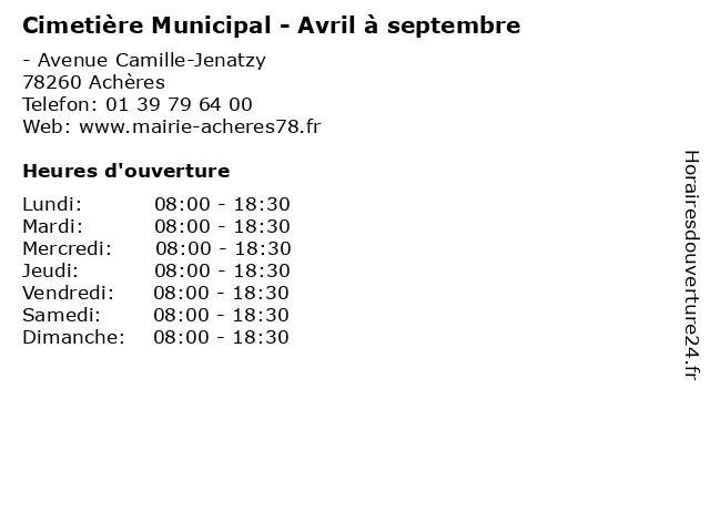 Termes de recherche pour Cimetière Municipal - Avril à septembre:du, au, 1er, municipal, septembre, avril, 30, communal, d'achères, cimetiere, enterrement, défunt |