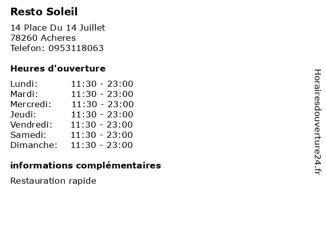 | Dimanche | 11:30-23:00 |