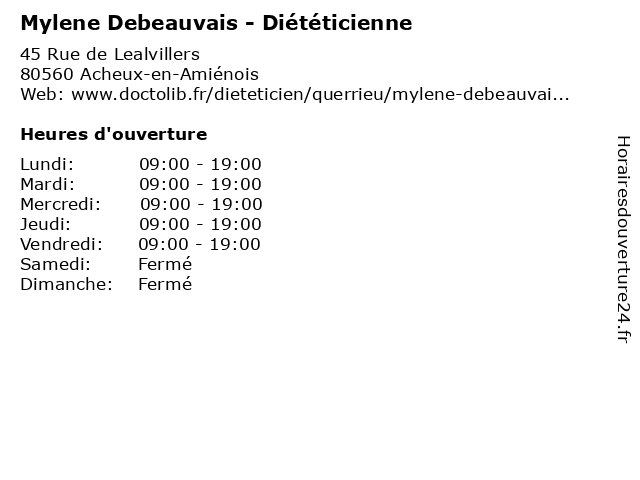 1 Mylene Debeauvais - Diététicienne (Distance: 11,77 km) 15 Rue Notre Dame, 80260 Rubempré aliment, debeauvais, dieticien, diététicienne, medecin, mylene, nutrition 2 Adeline Benoist - Diététicienne (Distance: 6,54 km) s/n Place Edgard Godard, 80300 Warloy-Baillon adeline, benoist, cabinet, diététicien, diététicienne, diététique, medical, secrétariat 3 Apolline Geiger - Diététicienne (Distance: 14,17 km) 22 Rue Armand Devillers, 80630 Beauval aliment, apolline, dieticien, diététicienne, geiger, medecin, nutrition 4 Charlotte Baron - Diététicienne (Distance: 16,09 km) 1 bis Rue Jean Moulin, 80600 Doullens alimentation, baron, charlotte, dieteticien, diététicienne, nourriture, sante 5 Mylène Debeauvais - Diététicienne (Distance: 16,24 km) 26 Route nationale, 80115 Querrieu alimentation, debeauvais, dieteticien, diététicienne, mylene, mylène, nourriture, sante 6 Charlotte Baron - Diététicienne (Distance: 18,20 km) 3 Avenue Jean Moulin, 80800 Corbie alimentation, baron, charlotte, dieteticien, diététicienne, nourriture, sante |