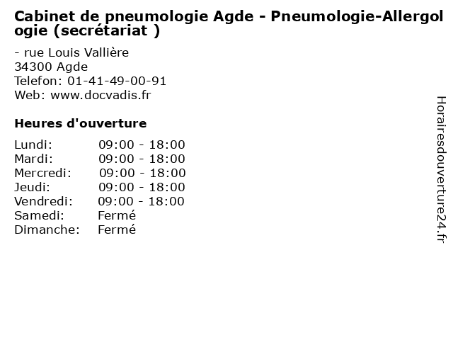 Termes de recherche pour Cabinet de pneumologie Agde - Pneumologie-Allergologie (secrétariat ):agde, de, cabinet, santé, secretariat, allergologie, pneumologie, docteur, consultation |