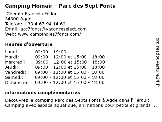 | Dimanche | 09:00-12:00 et 15:00-18:00 |