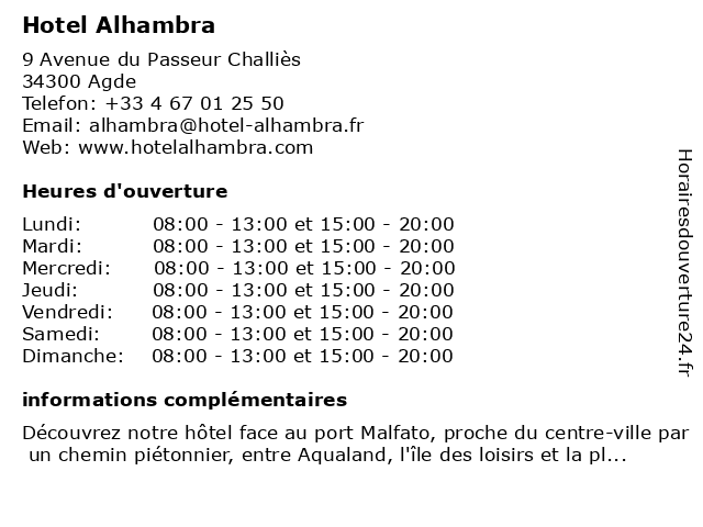 | Samedi | 08:00-13:00 et 15:00-20:00 |