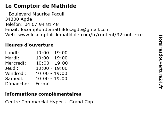 | Mercredi | 10:00-19:00 |