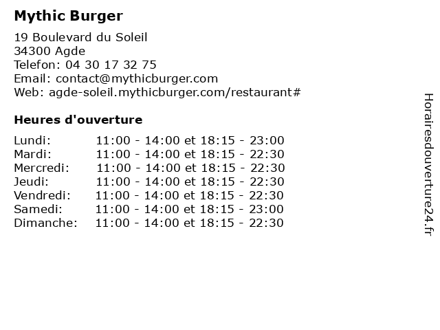 | Mardi | 11:00-14:00 et 18:15-22:30 |