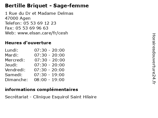 | Lundi | 07:30-20:00 |