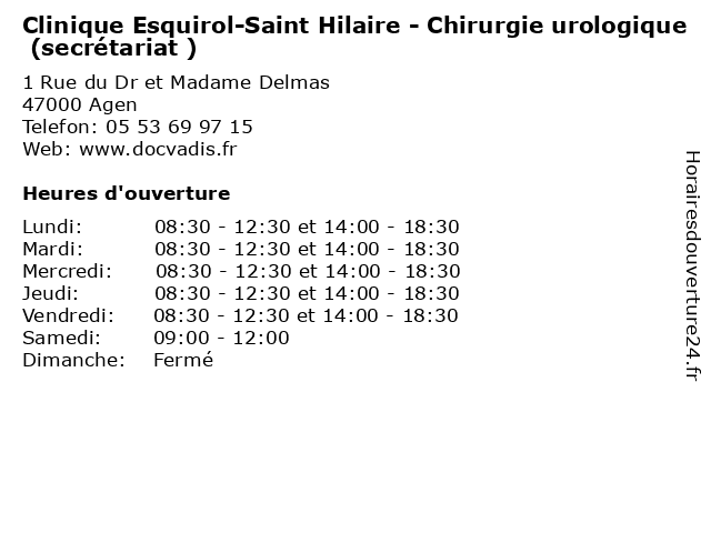 Termes de recherche pour Clinique Esquirol-Saint Hilaire - Chirurgie urologique (secrétariat ):saint, hilaire, clinique, santé, secretariat, chirurgie, docteur, consultation, esquirol, urologique |