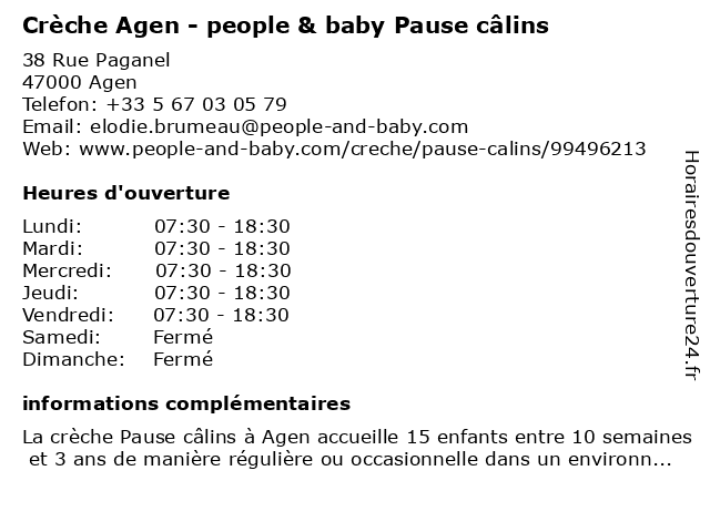 1 People & Baby (Distance: 0,01 km) 38 Rue Paganel, 47000 Agen baby, babysitting, crèches, garde d'enfants, people 2 People & Baby (Distance: 0,28 km) 209 Avenue Edouard Herriot, 47000 Agen baby, babysitting, crèches, garde d'enfants, people 3 Crèche Agen - people & baby Les petits princes (Distance: 0,38 km) 209 Avenue Edouard Herriot, 47000 Agen agen, baby, crèche, les, people, petits, princes 4 Crèche Agen - people & baby Nougatine (Distance: 0,82 km) 66 Rue des Capiscols, 47000 Agen agen, baby, crèche, nougatine, people 6 People & Baby (Distance: 1,76 km) 1 Impasse du Paradis, 47000 Agen baby, babysitting, crèches, garde d'enfants, people |