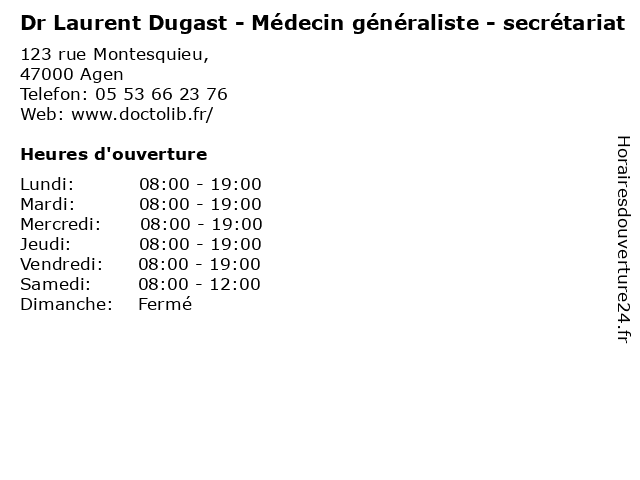 | Lundi | 08:00-19:00 |