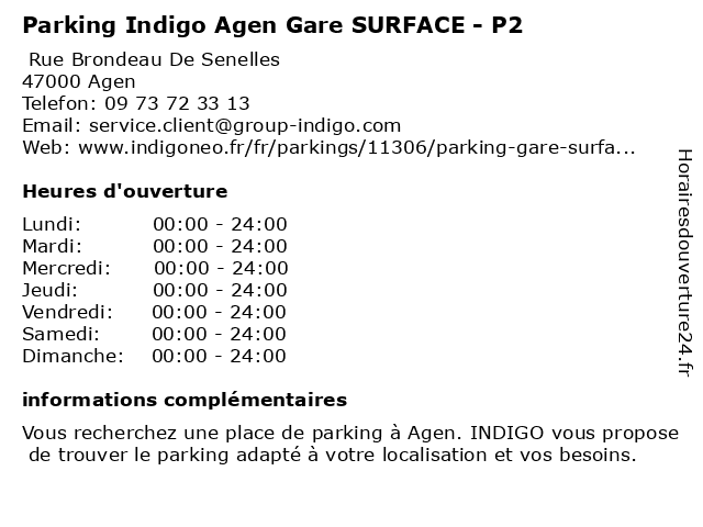 1 Parking Indigo Agen Gare STRUCTURE - P1 (Distance: 0,00 km) Rue Brondeau De Senelles, 47000 Agen agen, borne de recharge pour véhicules électriques, gare, indigo, p1, parking, structure 2 Borne de Recharge INDIGO (Distance: 0,03 km) Rue Brondeau De Senelles, 47000 Agen borne, de, indigo, recharge 3 Gare d'Agen - Guichet (Distance: 0,05 km) 1 place Rabelais, 47000 Agen agen, billetterie, d'agen, gare, guichet, services, station 5 Onepark / Gare d'Agen (Courte et Longue durée) Parking (Distance: 0,22 km) 1 Place Rabelais, 47000 Agen courte, d'agen, durée, et, gare, longue, onepark, parking, services 6 Parking Indigo Agen Marché (Distance: 0,60 km) 24 Place Jean-baptiste Durand, 47000 Agen agen, borne de recharge pour véhicules électriques, indigo, marché, parking |