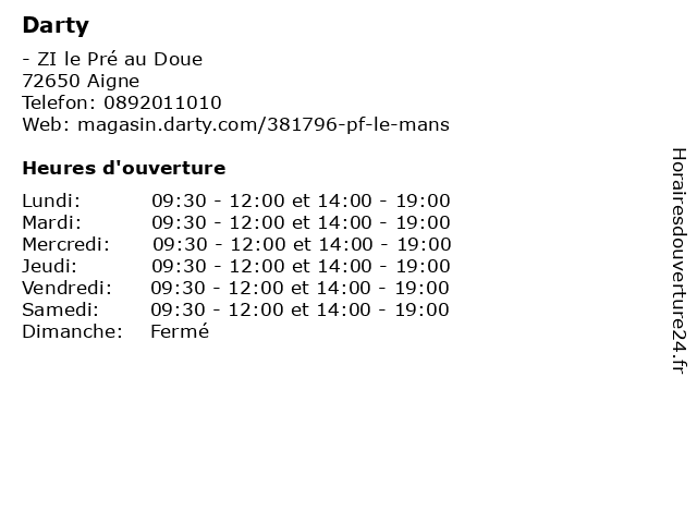 1 DARTY (Distance: 5,34 km) . Du Moulin aux Moines, 72650 La Chapelle Saint Aubin beaute, cafe, calzedonia, chaussures, darty, enfants, lingerie, mode femmes, mode hommes, restaurant, sec, service, sport 2 DARTY Le Mans (Distance: 4,81 km) Avenue des Frères Renault, 72650 La Chapelle-Saint-Aubin darty, le, mans 3 Darty cuisine Le Mans (Distance: 4,81 km) Avenue des Frères Renault, 72650 La Chapelle-Saint-Aubin cuisine, darty, le, mans 4 DARTY Le Mans Ruaudin (Distance: 16,47 km) 1 Boulevard des Hunaudières, 72230 Ruaudin darty, le, mans, ruaudin 5 Darty Cuisine Le Mans Ruaudin (Distance: 16,57 km) 1 Bd des Hunaudières Family Village, 72230 Ruaudin cuisine, darty, le, mans, ruaudin 6 DARTY Beaumont-sur-Sarthe (Distance: 17,16 km) 7 Place Dufour, 72170 Beaumont-sur-Sarthe beaumont, darty, sarthe, sur |