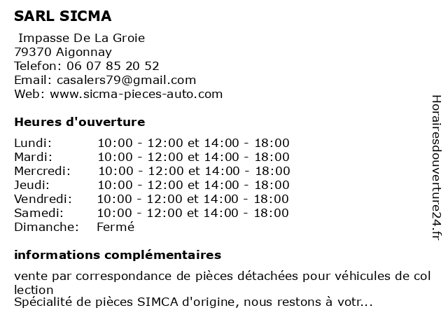 | Samedi | 10:00-12:00 et 14:00-18:00 |