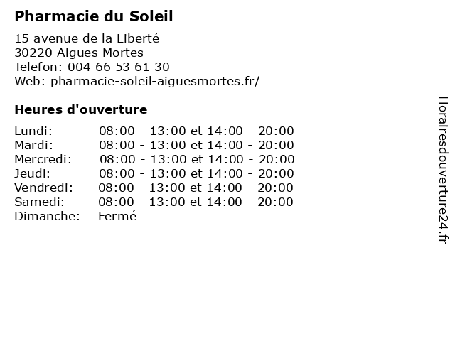 | Lundi | 08:00-13:00 et 14:00-20:00 |